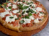 Fresh mozzarella grande cheese, fresh spices, tomato sauce, Roma tomatoes, fresh basil & parmigiano reggiano cheese.