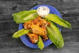 Unbreaded chicken wing, deep-fried then coated or dipped in a sauce.